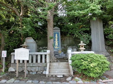 [ 日蓮龍ノ口法難跡 ] その後、一旦モノレールの駅へ引き換えし、今度は駅の右側を片瀬山公園に沿って歩いて行く。すると、10分弱で真ん中に江ノ電が走る道に出て、龍口寺に到着する。龍口寺は、日蓮ゆかりのお寺で、山門左手に日蓮龍ノ口法難跡の碑が建っている。ちなみに、碑の前にあった案内板によると、立正安国論を書いた日蓮は、鎌倉幕府の政策を中傷したとされ、子丑の刻(深夜2時頃)、この地で斬首されようとしたが、江ノ島の方から満月ようような光りものが飛んで来て、執行人の目がくらみ斬首を免れたとのことである。その後、日蓮は佐渡への流罪となった。 | ||