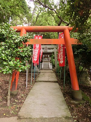 [ 小動(こゆるぎ)神社 ] 小動(こゆるぎ)神社は、海に面して建っており、1333年(元弘3年)、新田義貞が鎌倉攻めの戦勝祈願をした神社という。ちなみに、小動とは、この神社が建つ岬に、風もないのにゆれる松があったことから付いた名前だそうが、松ではなく満開の紫陽花が出迎えてくれた。そして、のんびり海に浮かぶ江ノ島を眺めた後、帰路に着いた。 | ||