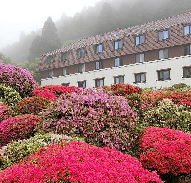 [ 小田急山のホテルつつじ庭園 ] で、肝心の小田急山のホテルつつじ庭園であるが、霧に霞んでいるとはいえカラフルなつつじ、そして満開のしゃくなげが出迎えてくれた。色んな表情を見せてくれる庭園である。