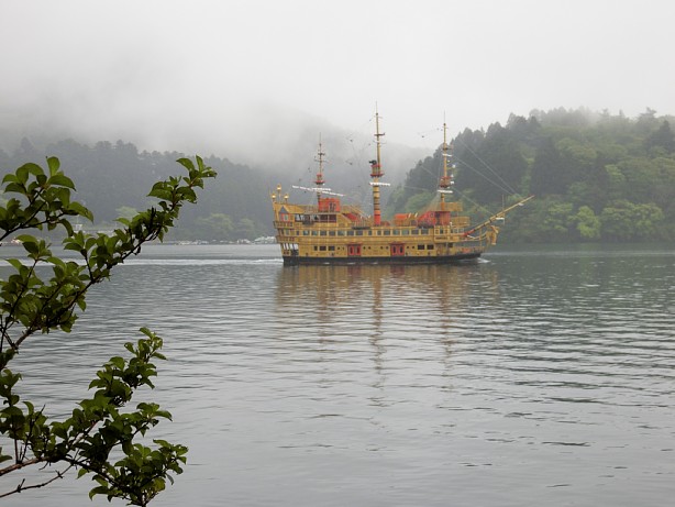 [ 霧の芦ノ湖 ] 元箱根港から徒歩約20分の芦ノ湖畔に建つ小田急山のホテルつつじ庭園へは、ここ数年つつじやしゃくなげの花咲く5月上旬に訪れているが、今年も訪れてみた。ただ、天気が良くなくバスで元箱根港に到着したところ、辺り一帯は霧が立ち込め海賊船の桟橋も照明が灯っている。なんか幻想的な感じではあるが、ちょっと残念。