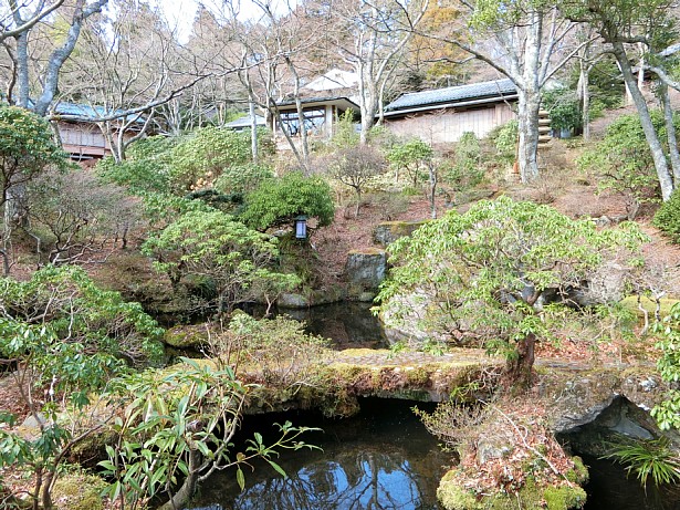 強羅に到着したら、早速本日の宿である強羅環翠楼へチェックイン。強羅環翠楼は、元々塔ノ沢にある元湯環翠楼・環翠楼別館と同じ経営であったものの、今は森トラストという企業が運営している。それでも昔の風格を残しており、本館は旧三菱財閥岩崎家の別荘であった建物で、営業開始は1949年である。その歴史もさることながら、傾斜地の斜面を生かした華清園という庭園でも有名で、チェックインの後、しばし庭園散策にいそしんだ。2月なので派手さはないが、池やアセビの花を楽しんだほか、本館に面し立っている梅の木は今が旬、満開の古木はなかなか見事であった。