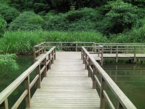 [ ふれあいの水辺といこいの水辺 ] ラストは、ふれあいの水辺といこいの水辺で、蝶がいっぱい飛んでいました。しかも、人が捕ったりしないからでしょうか。私がいるにも拘わらず、水辺の欄干の上でのんびり羽を広げていました。