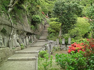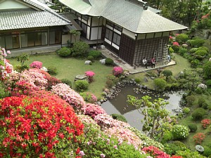 [ 佛行寺 ] お次は、5月に訪れた佛行寺のご紹介である。最寄駅は湘南深沢駅で、徒歩15分くらいのところに建っているが、道が判りにくいので、予め地図を用意しておいた方が良い。また、ツツジの名所でも有名なお寺で、私が訪れた時は満開ではなかったものの、赤やピンクの花々が目を楽しませてくれた。なお、本堂裏の庭園も、なかなか見事なものである。 | ||