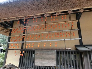 [ 甘酒茶屋 ] 更に進むと、今度は甘酒茶屋の前に出る。甘酒茶屋は、かつて箱根地域の街道沿いに9箇所設けられていたものの、明治に入り国道1号線が開通すると、街道を歩く人が減少し今ではこの地に1軒だけという。早速、軒下に柿が干してある古民家風の甘酒茶屋に入ってみた。 中に入ると正面に囲炉裏があり、冬であれば炭火がチロチロと燻っている。この囲炉裏の前で甘酒とお餅をいただくと、これまた美味。