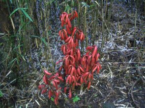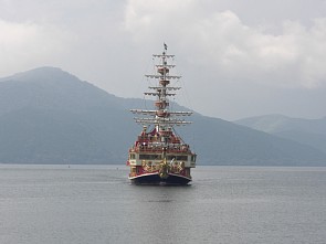 [ 芦ノ湖・元箱根へ ] このお玉ヶ池の分岐を過ぎ、更に旧街道を行くと、約20分ほどで終着地点の芦ノ湖・元箱根へ到着する。元箱根には対岸の桃源台へ行く遊覧船や、貸ボートもあり結構楽しめる。そうそう、道中、ツチアケビ(写真右上)が実を付けていた。目にするのは初めてで、ちょっと感動した。