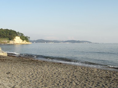 そして、日を改めて鎌倉から江ノ電に乗り、稲村ヶ崎(写真上)へと向かった。稲村ヶ崎は、駅から徒歩約5分のところにある相模湾に突き出た小さな岬で、かつて新田義貞が、この岬を海側から回り込み鎌倉へ攻め入ったという。激しい戦いの後、西暦1333年、鎌倉幕府は滅亡した。ちなみに、今はのどかな公園となっており、岬から、このホームページでも紹介している逗子や江ノ島を望むことができる。 ここで一休みした後、最終目的地である霊光寺へと向かった。