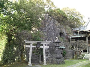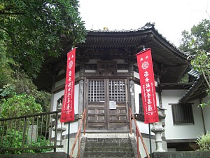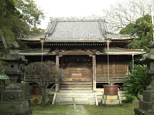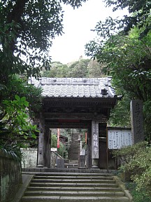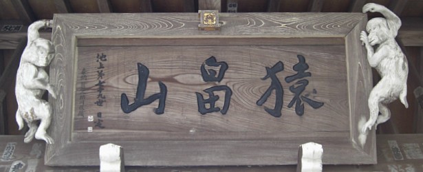 [ 法性寺山門 ] 法性寺は、岩殿寺から更に20分くらい歩いたところにあり、最初に目にするのが、岩殿寺同様山門である。ちなみに、法性寺の山号は猿畠山と言い、山門には白い猿の彫り物(写真上)が刻まれている。白い猿は、日蓮上人(鎌倉時代の仏教僧で日蓮宗の開祖)が焼き打ちされた際、法性寺境内にある岩窟まで案内し助けたと言われている。 |